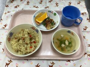 給食はご飯の洋風献立でした🎶