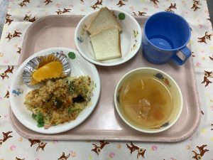 今日の給食はハロウィンが近いので給食は『かぼちゃのグラタン』でした🎃